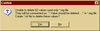 These values could be removed either manually or automatically by creating and executing *.INF file. *.INF file will be created under the same name as *.REG file, when you generate Undo/Redo file by clicking on Yes in the following message:
