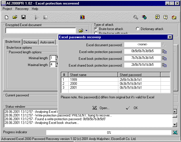 Advanced Excel 2000 Password Recovery |