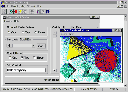 Windows library is a complete set of libraries, include files, examples and documentation for creating transputer programs with MS Windows interface.